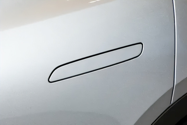 前脸采用纯电车型常见的封闭式设计,但整体处理非常干净,没有复杂镀铬或凌乱线条。贯穿式日行灯是一条横向展开的极简光带,灯腔内的折线结构在夜间点亮时非常细腻,辨识度也很高。两侧前包围位置保留了气流导入区域,它既是造型的一部分,也是功能性的体现,用以降低前脸的气流阻力。这个区域的线条也进行了柔化处理,使整个前脸看起来既有科技感,又不会让人产生紧张或攻击性视觉压力。对于家庭用户来说,这种设计更容易被接受,因为它不会令人产生审美疲劳,也不会随着行业风格的变化而迅速过时。